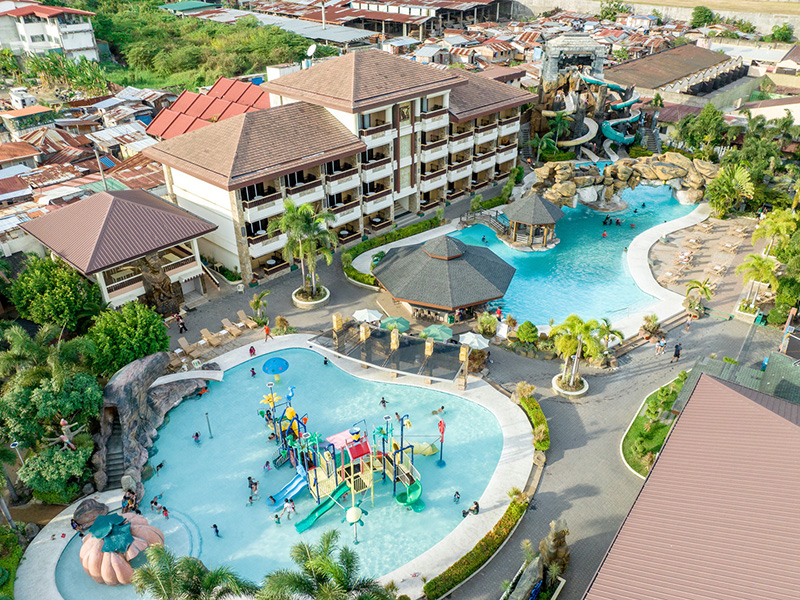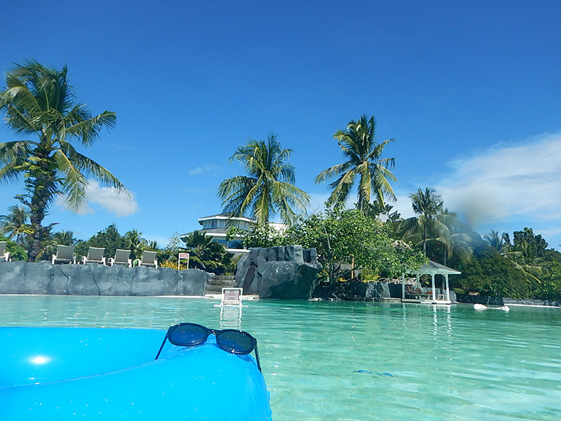 提携リゾート「セブ・ウエストタウン・ラグーン・サウスウイング」は、学校からタクシーでわずか5分。昼は南国の陽ざしの下でリラックス、夜はライトアップされたプールで幻想的な時間を過ごせます。