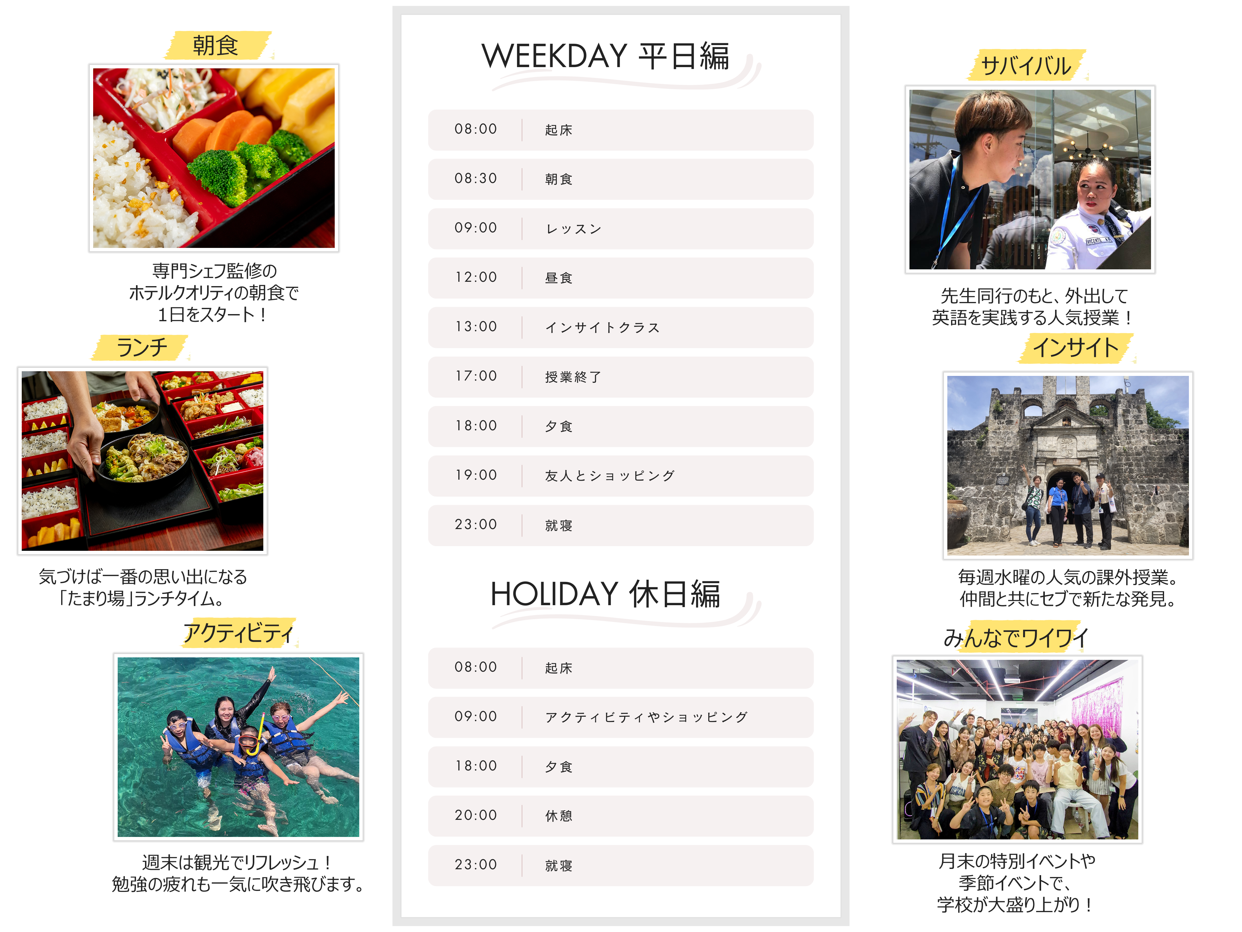 門限はありません。DHはスパルタ校ではなく、自由度の高いアットホームな学校です。 放課後や週末は、仲間と海やカフェに出かけたり、思い出をつくったりしながら、セブでの時間を存分に楽しめます。